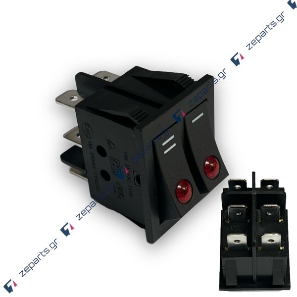 Διακόπτης διπλός ON/OFF Ι / ΙΙ 6 επαφών 16A 250V με φώς Γενικής Χρήσης